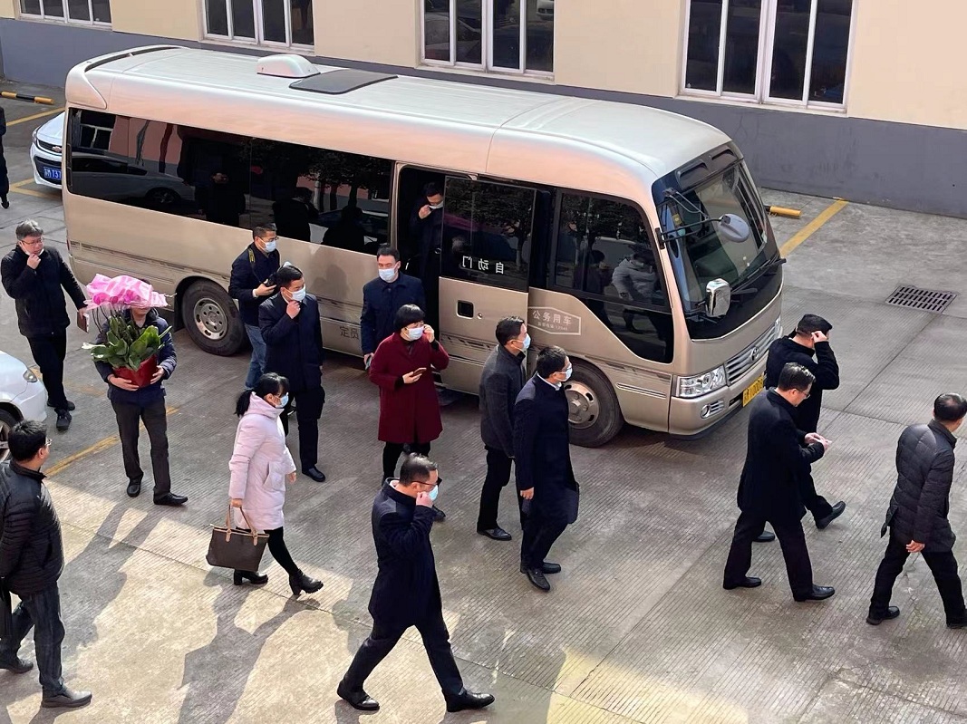 2022年2月10日上午11時(shí)許,泰州市海陵區(qū)區(qū)委書記孫群書記等領(lǐng)導(dǎo)一行來(lái)到我司進(jìn)行走訪調(diào)研,針對(duì)我司年度發(fā)展規(guī)劃提出指導(dǎo)性意見,我司董事長(zhǎng)丁克芳先生及董事會(huì)成員陪同視察!
