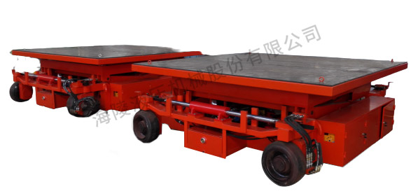 設(shè)備組成為液壓泵站驅(qū)動(dòng)的升降平臺(tái),升降平臺(tái)上工作臺(tái)面可實(shí)現(xiàn)前應(yīng)移動(dòng)及旋轉(zhuǎn),整個(gè)平臺(tái)可實(shí)現(xiàn)縱橫向的行走,由電機(jī)驅(qū)動(dòng)實(shí)現(xiàn)行走功能,可以自由運(yùn)行,即能夠?qū)崿F(xiàn)縱向、橫向。